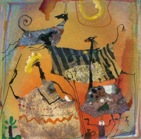 Hirtenbild, Aquarell Collage, 20 x 20 cm